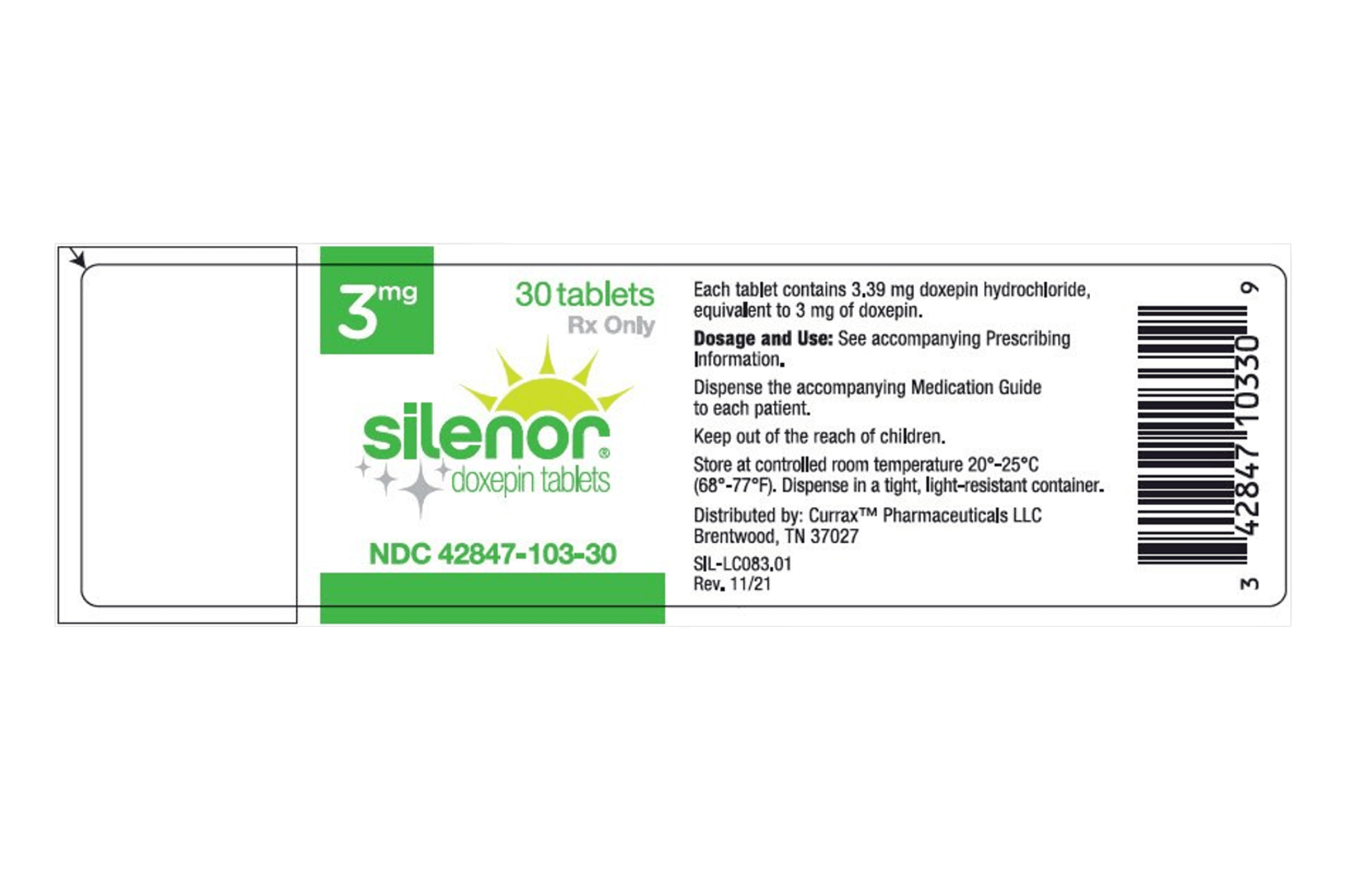 Silenor (Doxepin) is a prescription medication indicated for the treatment of insomnia characterized by difficulty with sleep maintenance. Unlike many other sleep aids, Silenor is not a controlled substance and works by blocking histamine receptors to help you stay asleep longer without the risk of physical addiction.